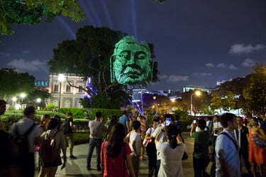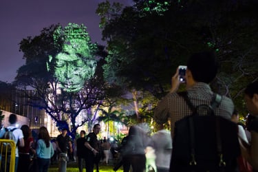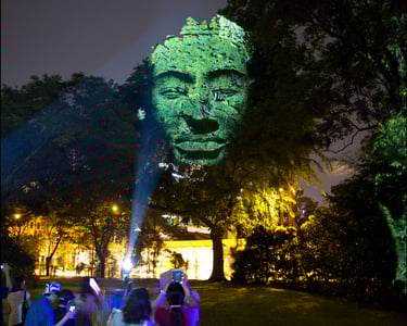Après plusieurs années de recherches techniques comme artistiques, sa forme définitive fût présentée en 2015 lors du SINGAPORE NIGHT FESTIVAL devant près de 100 000 personnes. L’installation met en forme 8 projections monumentales de visages bouddhistes sur les arbres. La rencontre de l’image projetée et de l’arbre produisent une illusion qui trouble notre perception habituelle, est-ce un arbre ? une image ? ou une illusion ?