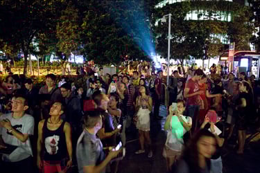 Les projections, bien que statiques, se jouent du regard des spectateurs et le vent, lorsqu’il s’invite, donne lieu à un supplément de vie.