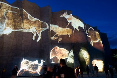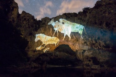 En 2019, la grotte Chauvet II, reproduction à l’identique de la grotte originale, fête son cinquième anniversaire à travers 4 soirées de projections dans les villes avoisinantes ainsi qu’une dernière sur la façade extérieure de la grotte reproduite. Pour cette réalisation, les images des peintures rupestres ont été retravaillées afin de les adapter à la projection lumineuse. Elles viennent recouvrir les facettes extérieures de la Grotte Chauvet II et redonnent volumes et vie aux dessins originels.