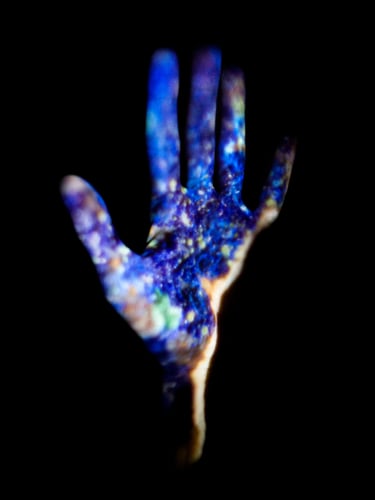 Sous notre écorce terrestre, dans une infranchissable obscurité, repose l’univers minéral. La Terre y sculpte les cristaux qui, après des millions d’années, jailliront à la surface. L’invisible géométrie y fait son oeuvre : constellation de quartz, planète iridescente, galaxie azuréenne, sous notre regard enflammé, le minéral se fait sidéral et sa contemplation nous rappelle les images qui, un jour, nous ont constitués.