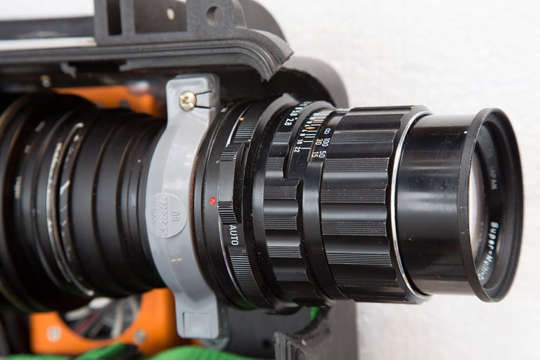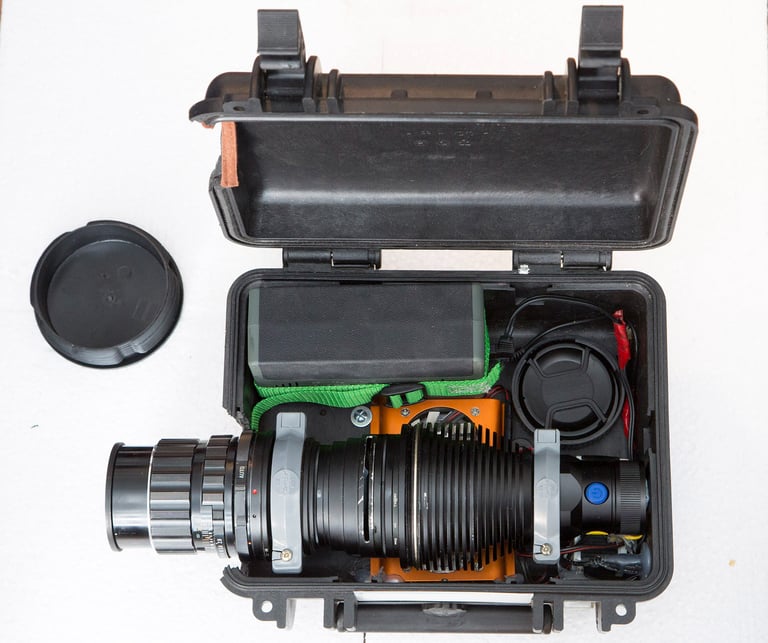 Néanmoins, en ce qui concerne la projection, le numérique n’a pas dépassé la projection sur film, en particulier dans la projection d’images fixes. À partir de ce constat, la construction d’un projecteur de film moyen format, capable de repousser les limites imposées par les technologies du marché, a été mise en œuvre.