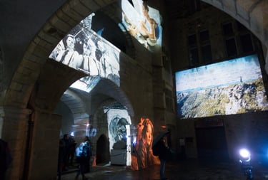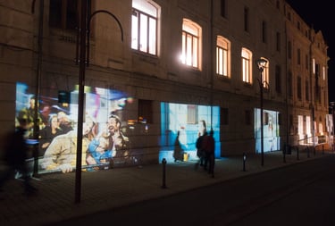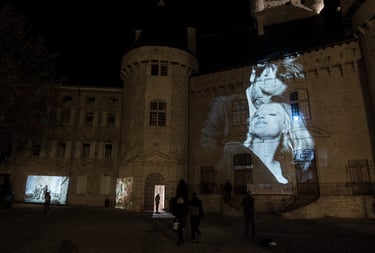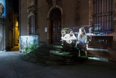 Pour la 20ème édition des Rencontres des Cinémas d’Europe d’Aubenas, la ville d’Aubenas présente une installation de projections statiques qui sortent le cinéma des salles obscures. Une sélection d’instantanés de films programmés lors du festival est projetée sur les murs, les portes et les fenêtres, créant des fragments de cinéma sur les diverses surfaces d’Aubenas.